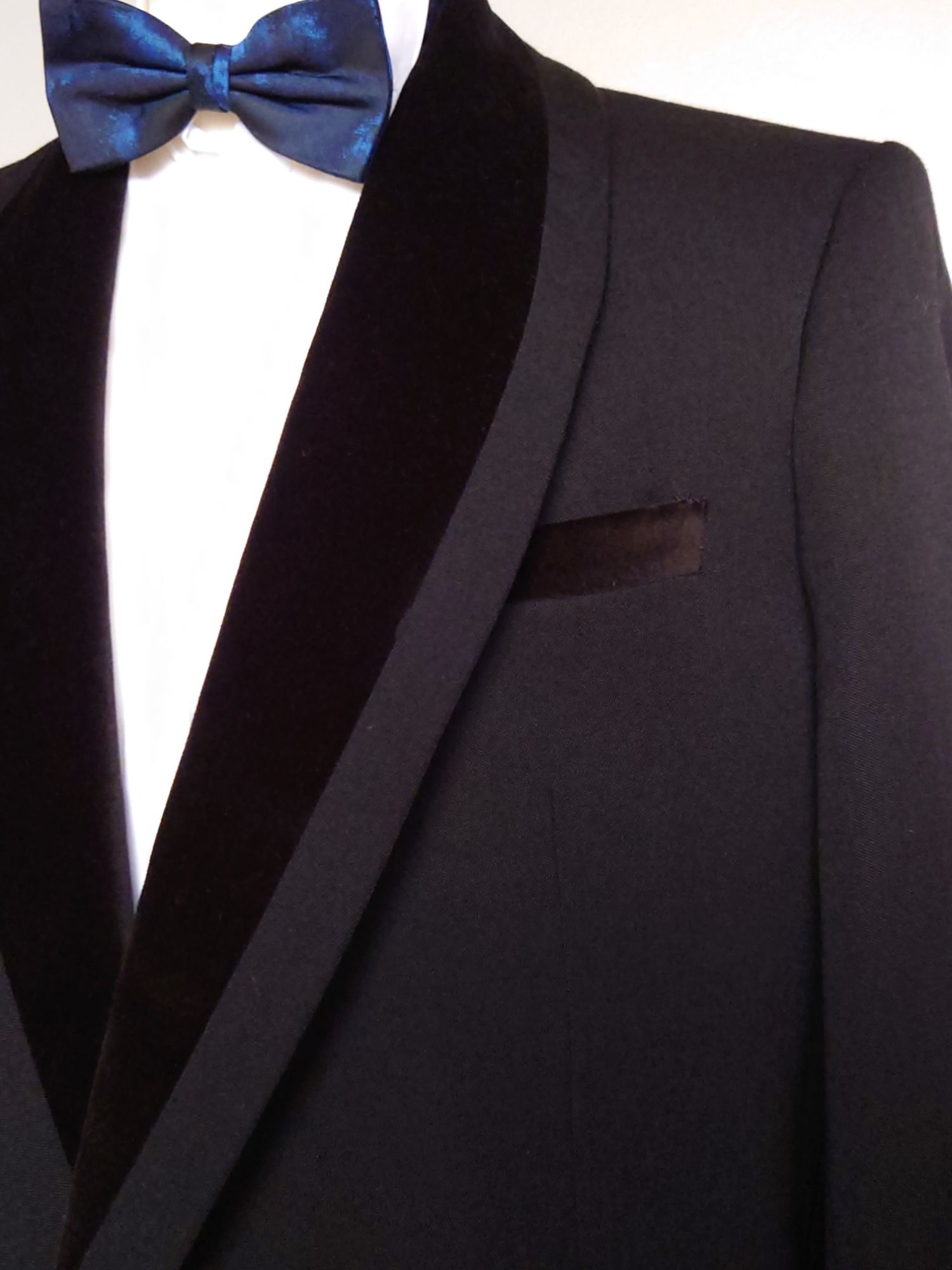 Dinner Suit Scabal Black Mohair with luxury fine art silk lining cloth from Scabal and Rampley and co